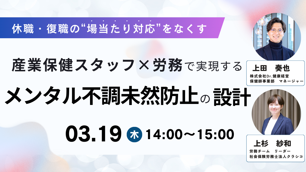 【2026年3月19日(木)開催】無料セミナー|産業保健スタッフ×労務で実現するメンタル不調未然防止の設計